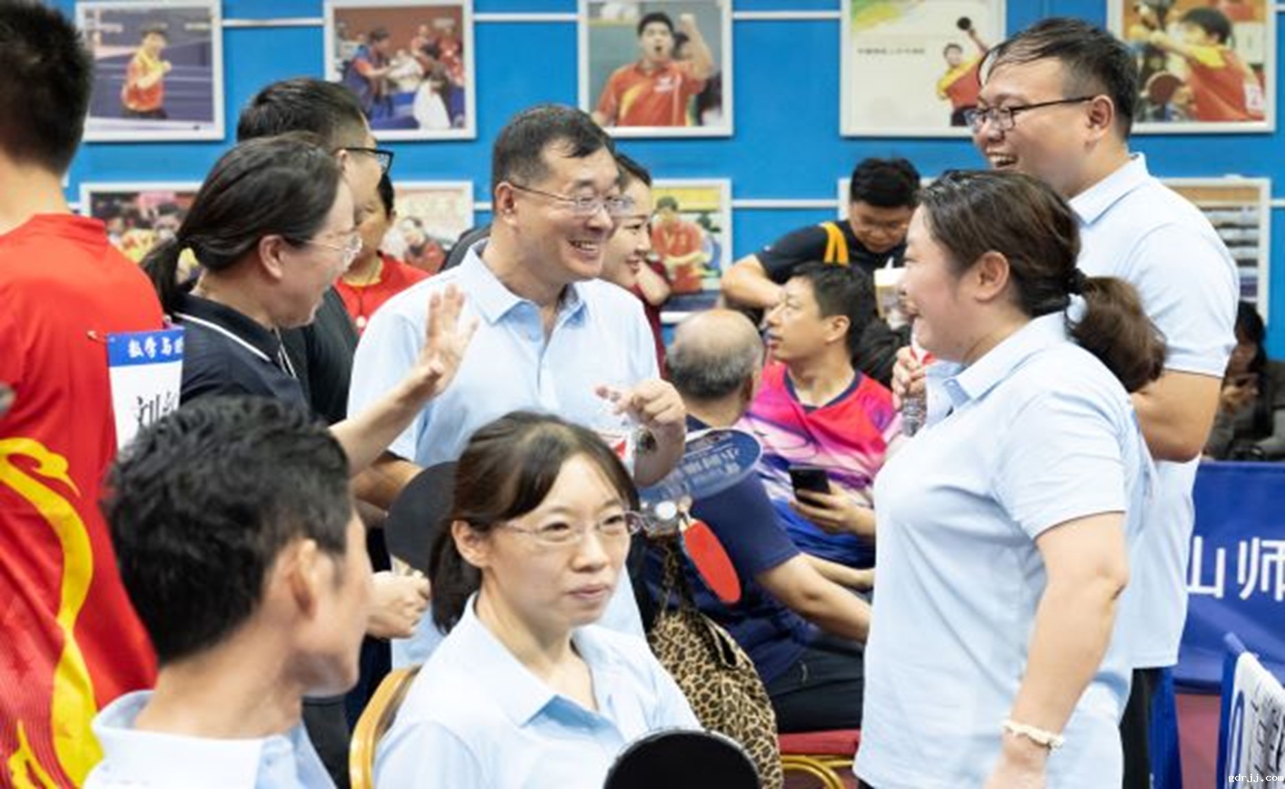 为迎接第40个教师节,9月7日,由校工会(妇委会)主办、体育学院承办的2024年“奋力‘乒’搏新时代 勇‘乓’高峰创一流”教职工乒乓球比赛在千佛山校区顺利举行。校党委副书记万光侠出席闭幕式并为获奖单位颁奖。有关单位部门负责人、院级单位工会主席、裁判员和选手参加活动。闭幕式由工会副主席孙全志主持。